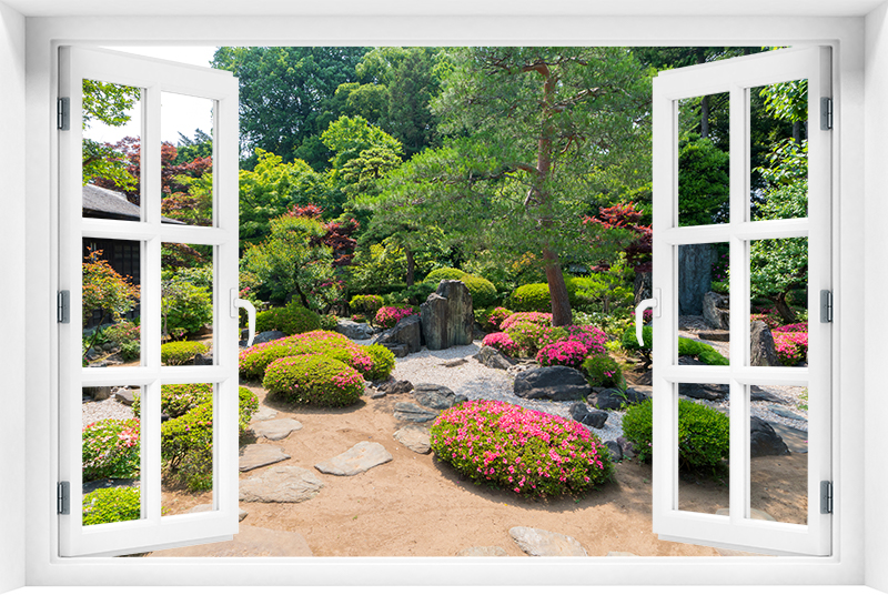 Fototapeta 3D Okno Krajobraz Kwiaty Drzewa Parki - kr-372