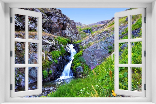 Fototapeta 3D Okno Krajobraz Wodospad kr-263