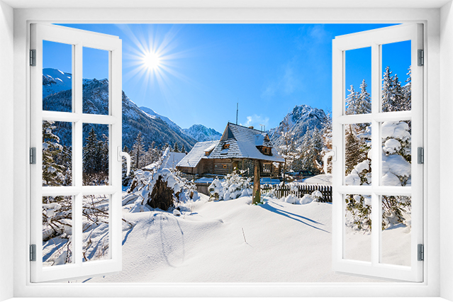 Fototapeta 3D Okno Drewniany domek w Tatrach - krz-11