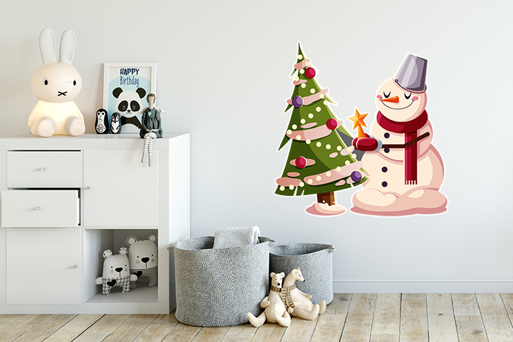 Naklejka świąteczna, Bałwan z choinką, 92x92cm - 229083278-3