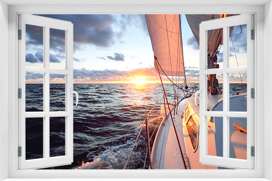 Fototapeta 3D Okno Krajobraz Morze Zachód Słońca - kr-400
