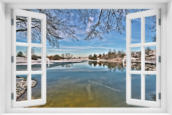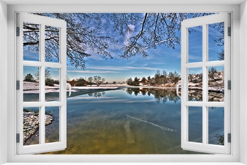 Fototapeta 3D Okno Krajobraz Jezioro Las kr-272
