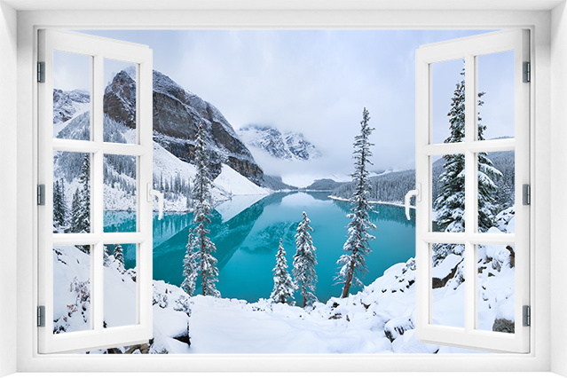 Fototapeta 3D Okno Piękne górskie jezioro zimą - krz-17