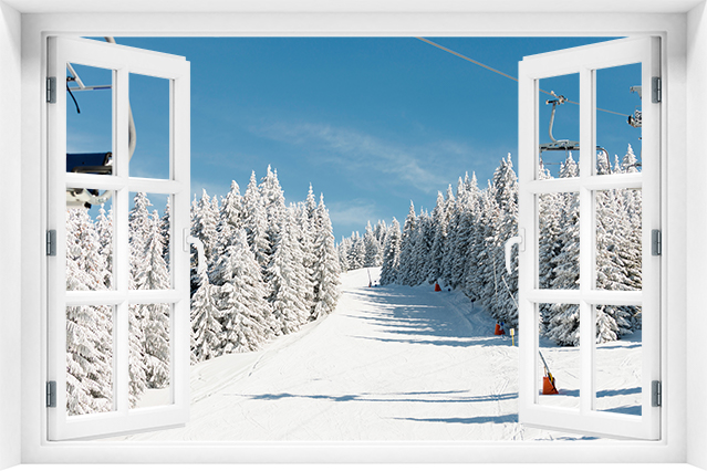 Fototapeta 3D Okno Stok górski, drzewa - krz-28